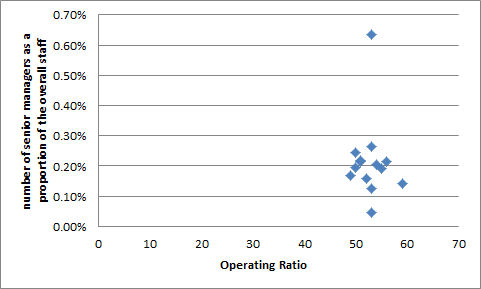 Firstly, I looked at the OR against the number of senior managers as a proportion of the overall number of staff. This is shown below:-